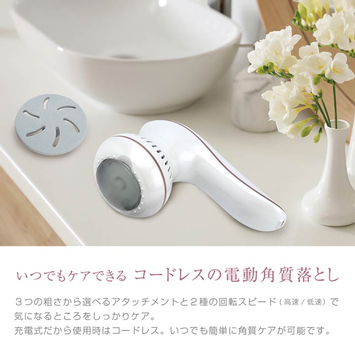 いつでもケアできるコードレスの電動角質落とし。