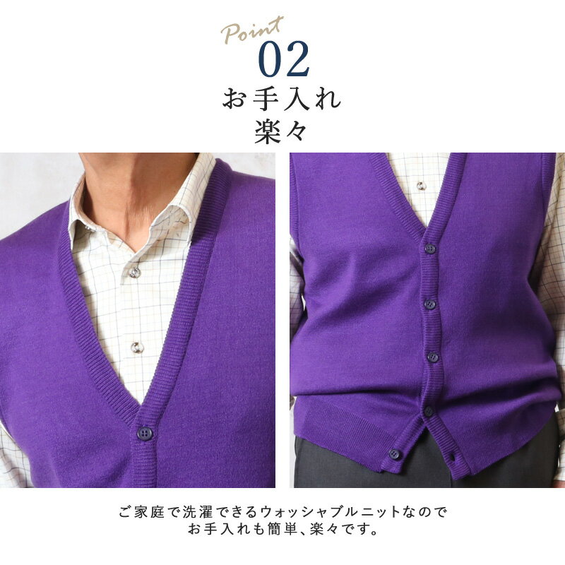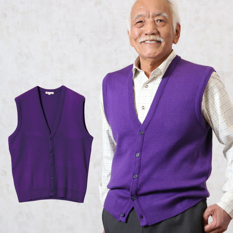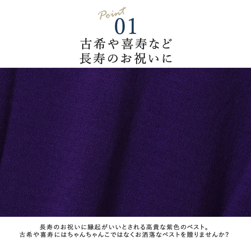 洗える ニット 前開き ベスト ジレ 長寿祝い の紫 古希 喜寿 ちゃんちゃんこ【ギフト包装無料】(シニアファッション 70代 80代 60代 ファッション 春夏 秋冬 紳士 メンズ おじいちゃん 服 お年寄り 高齢者 プレゼント)