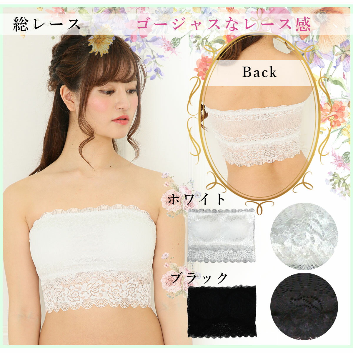【送料無料★ネコポス】チューブトップ チューブブラ 総レース ノンワイヤーブラ カップ付き マタニティ レース ベアトップ レディース ブラジャー キャミソール ブラトップ 見せブラ MLサイズ