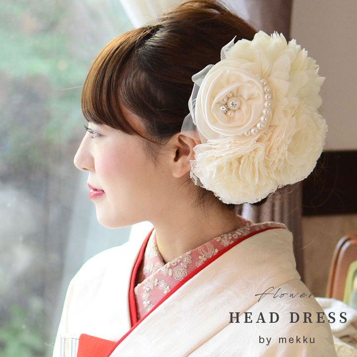 【限定価格・送料無料】フラワー ボンネ ヘッドドレス/ホワイト[ha109]